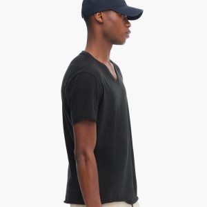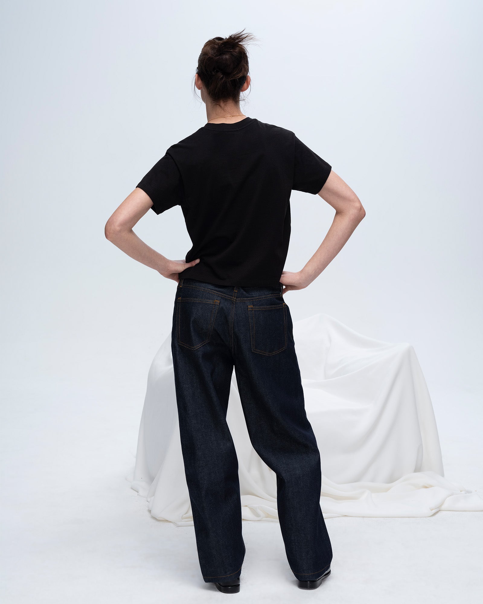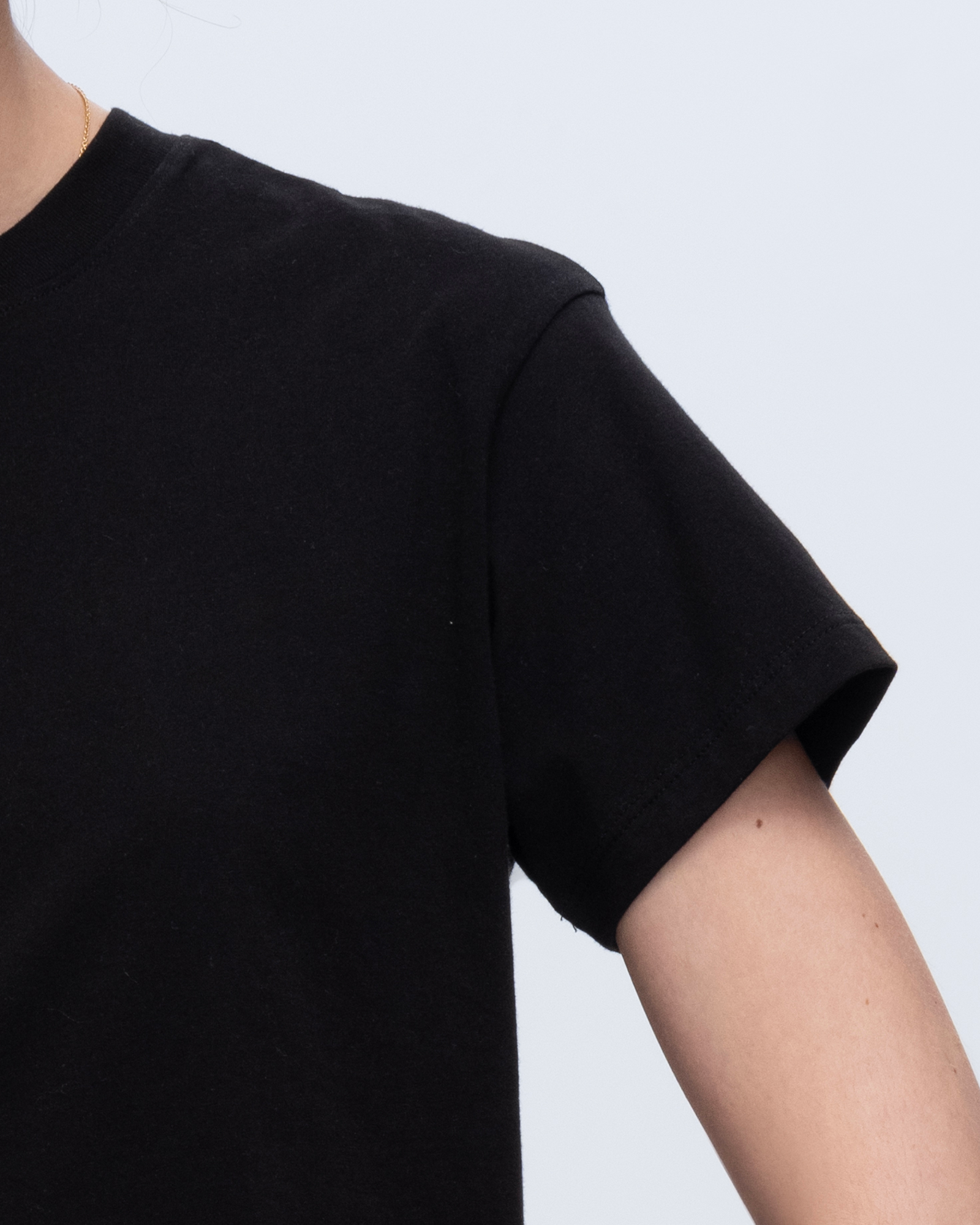 The Classic Jersey Short Sleeve Boy Tee is done in a luxe cotton jersey. It combines the weight and shape of a men’s piece with the fit of a women’s tee. It features a slightly cropped. boxy shape with longer and wider cut sleeves.