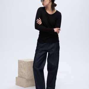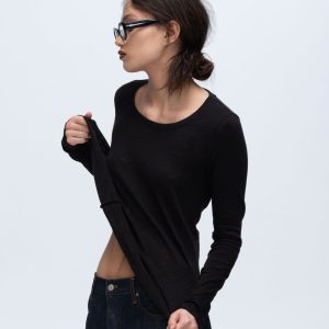 Slub Jersey Long Sleeve Destroyed Wash Tee – Black