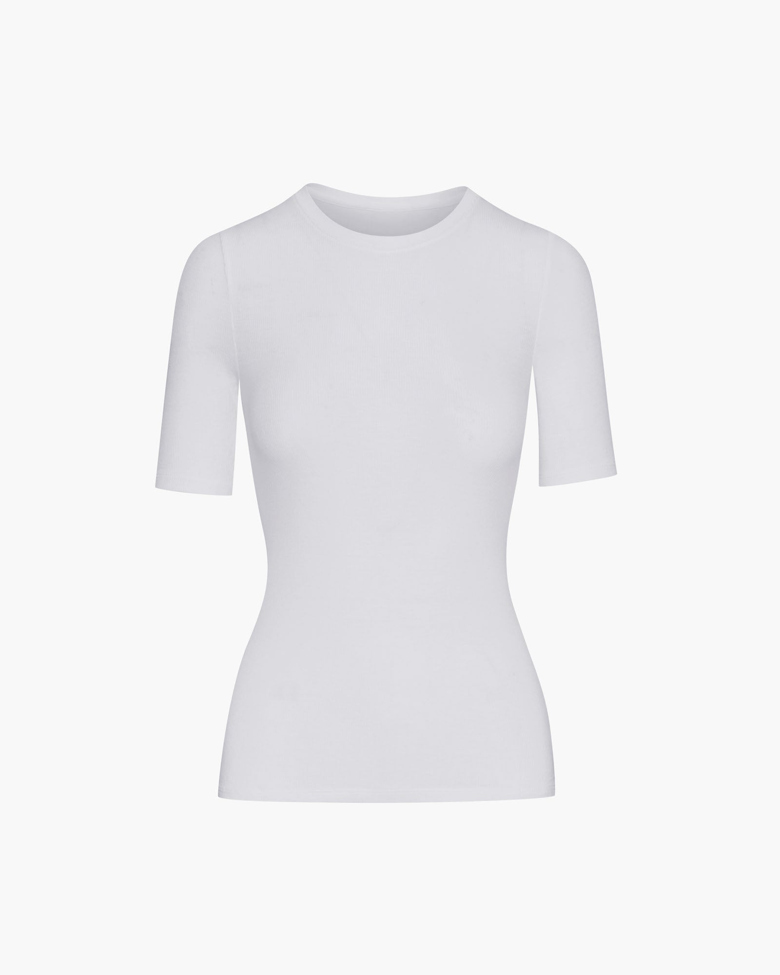 Modal Rib Short Sleeve Crew Neck Tee – White