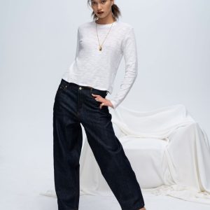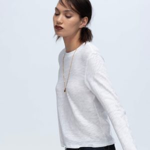Slub Jersey Long Sleeve Destroyed Wash Crop Tee – White