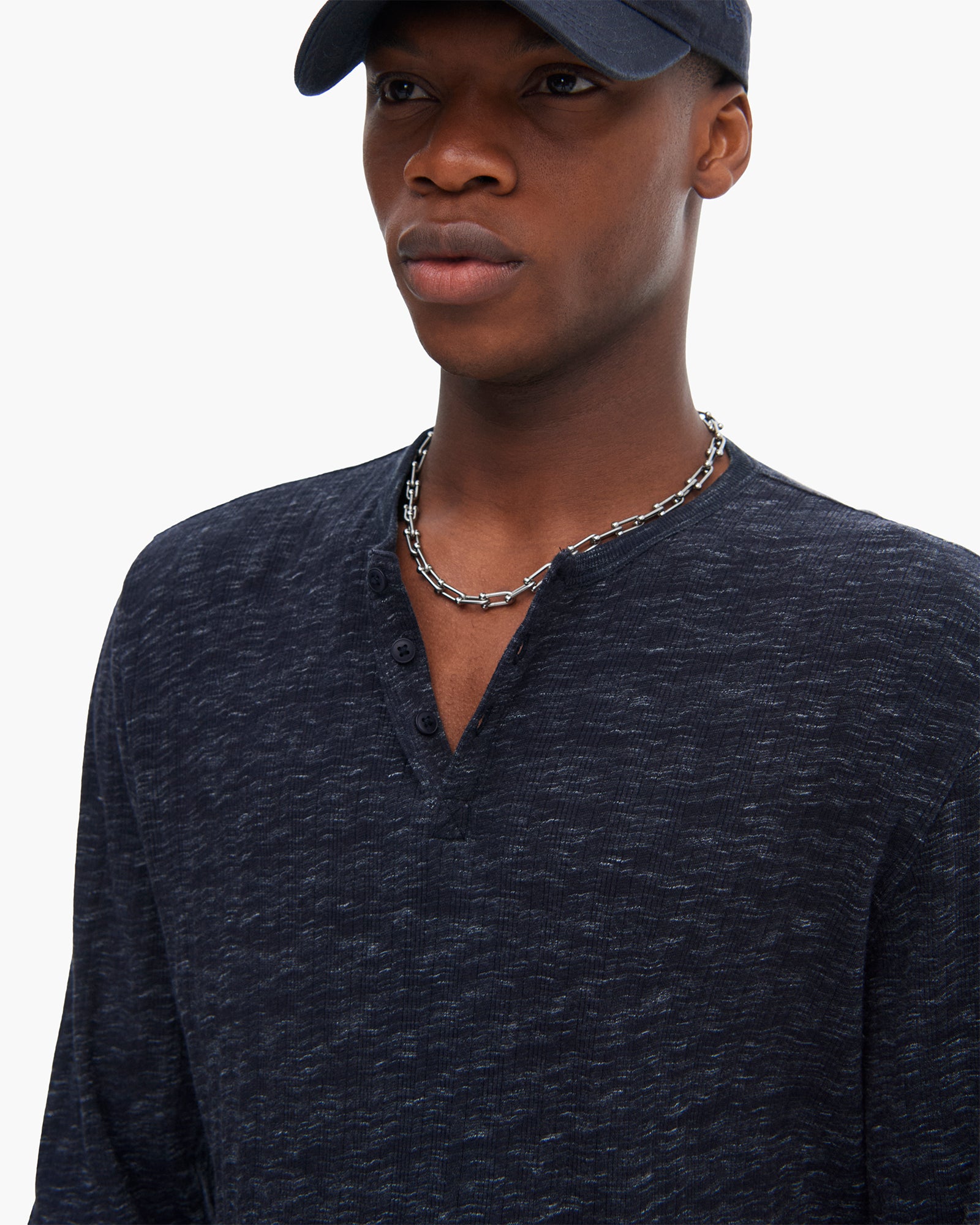 Rib Long Sleeve Destroyed Henley – Dark Navy