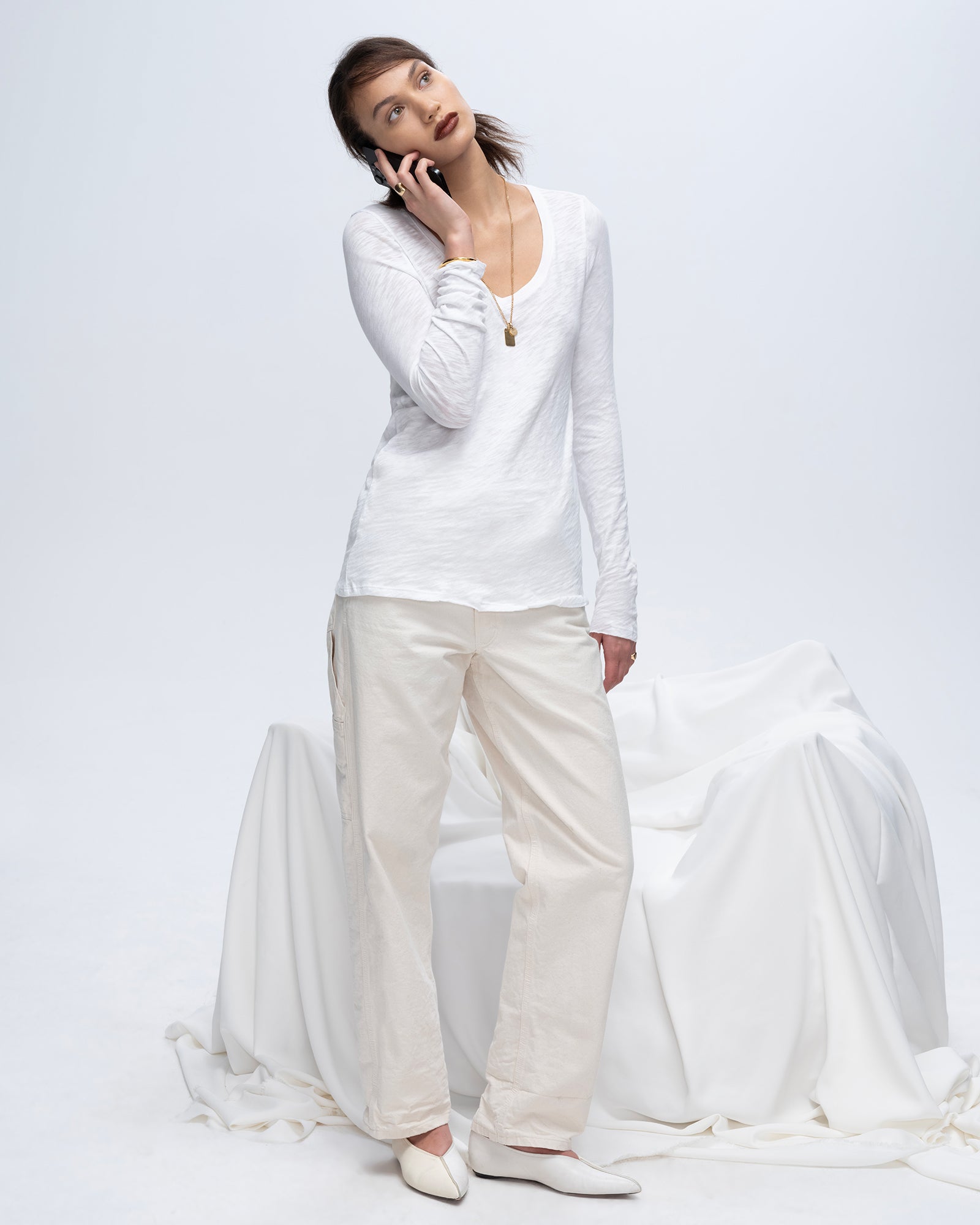 Slub Jersey Long Sleeve V-Neck Tee – White