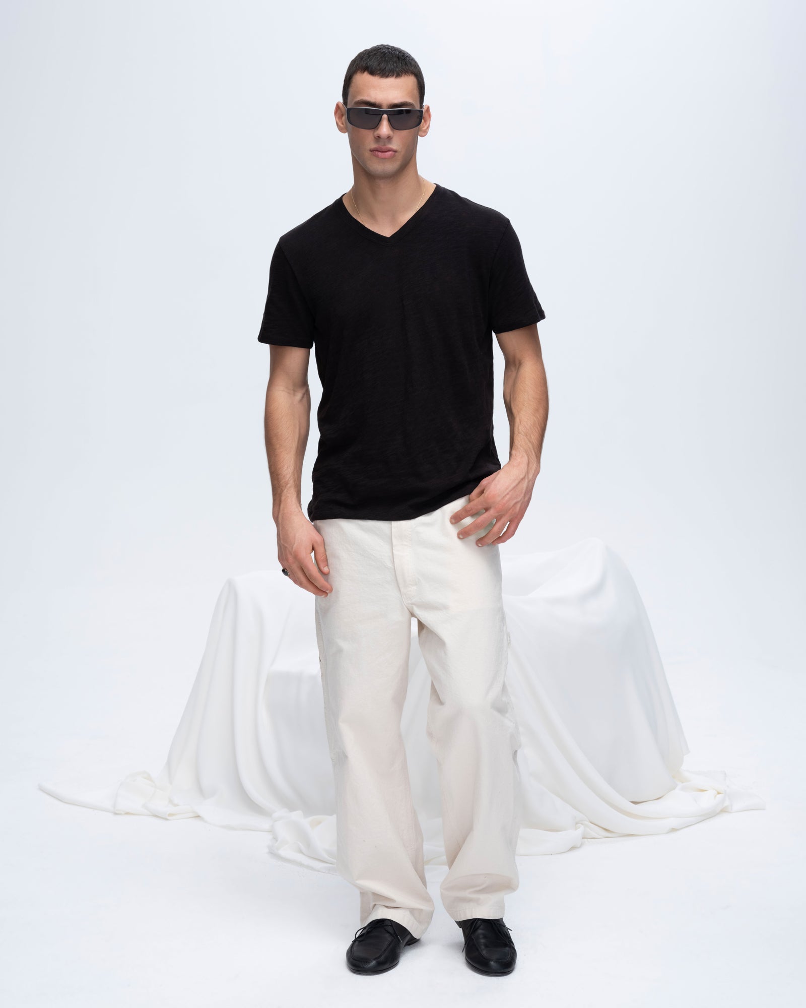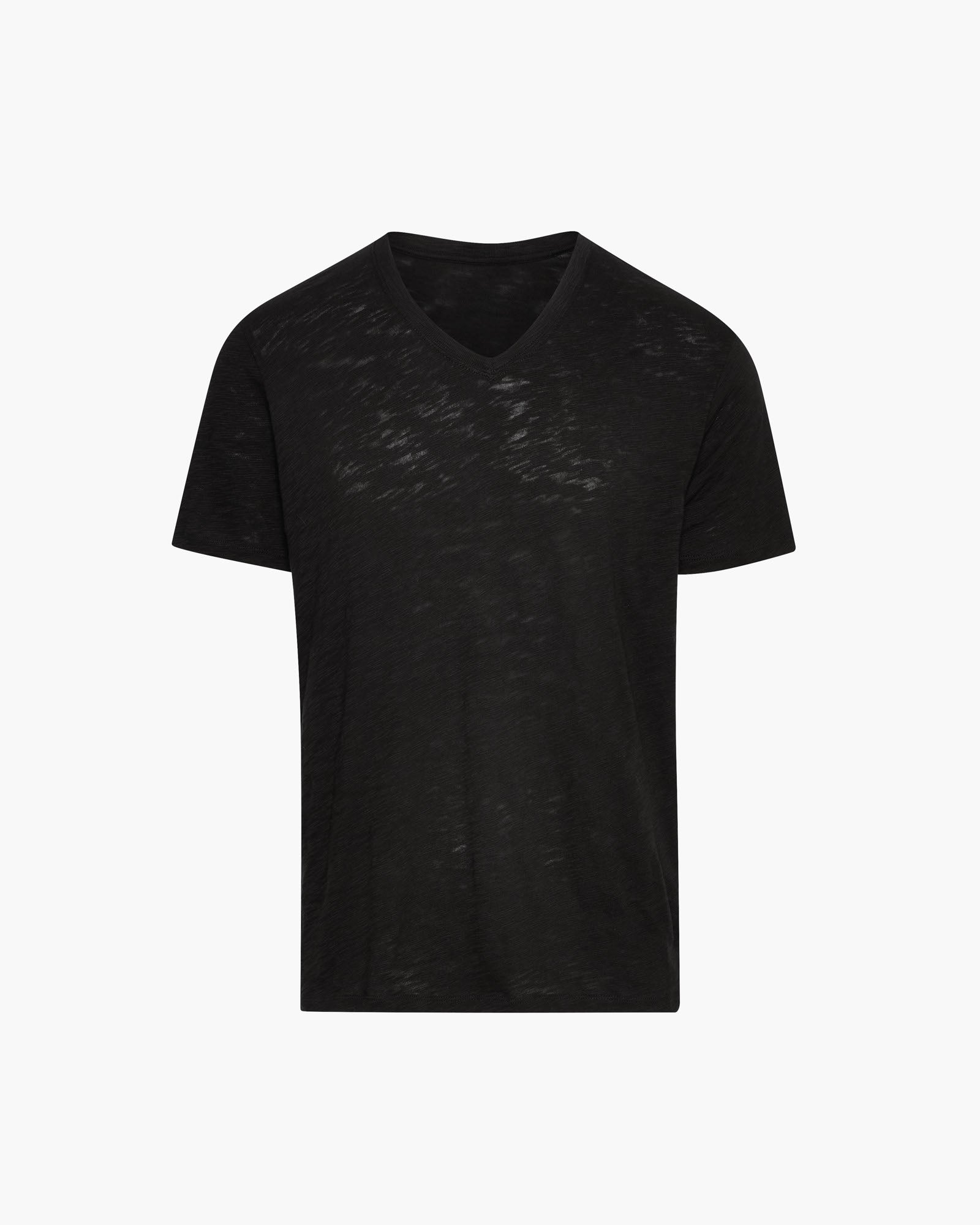 The Slub Jersey V-Neck Tee gets its texture from the uneven yarns of our unique Peruvian Cotton. It features a relaxed v-neck silhouette and just the right amount of sheer. The loose weave of this heavier Cotton molds modestly to the body offering the perfect drape.