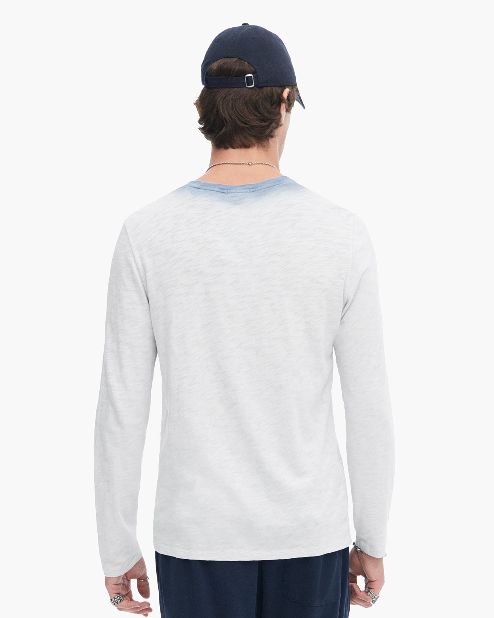 Laid-back with a subtle twist. Made from soft slub jersey. this long sleeve tee features a relaxed crew neck and ombr?? spray detail at the collar for a cool. sun-faded effect. Easy to wear. with just the right amount of edge.